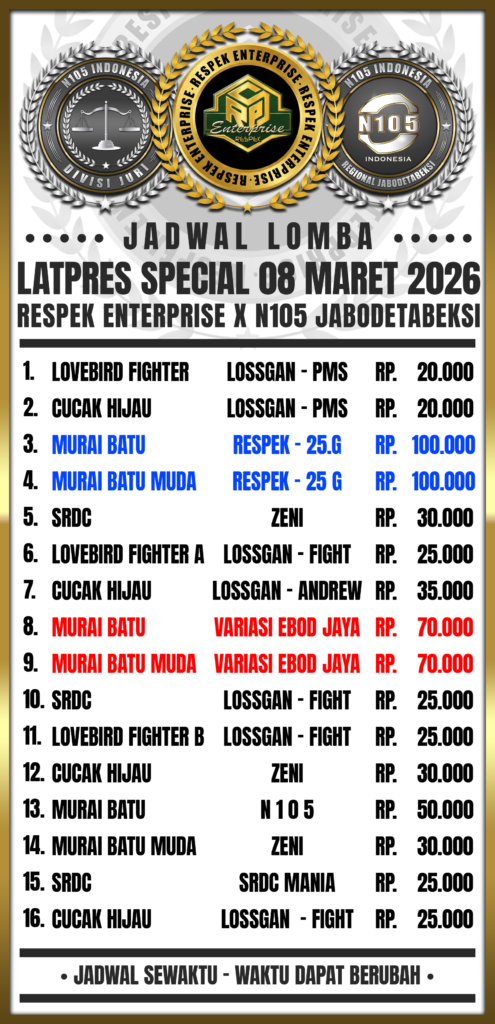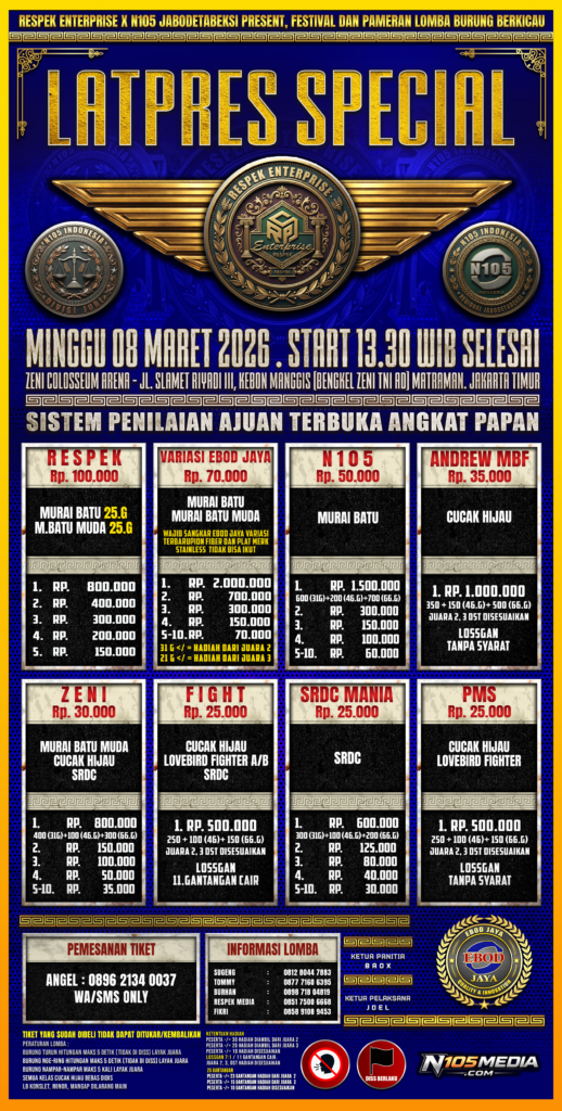 N105Media.com. Respek Enterprise kembali menggelar Latpres Special, yang akan di helat pada tanggal 8 Maret 2026. Yang membuat gelaran kali ini benar – benar special adalah panitia membuka kelas khusus Variasi Ebod Jaya yang disponsori langsung oleh Ebod Jaya dengan tiket sebesar tujuh puluh ribu rupiah.